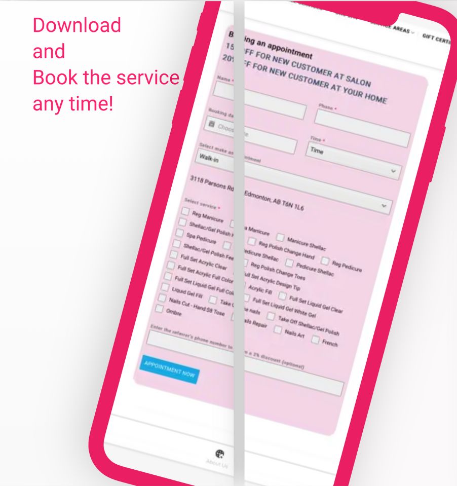 Sie können ganz einfach Nagelservices in Ihrer Nähe online über unsere Website, über unsere Mobile-App oder telefonisch buchen. Wir bieten ein nahtloses Buchungserlebnis für Ihren Komfort.